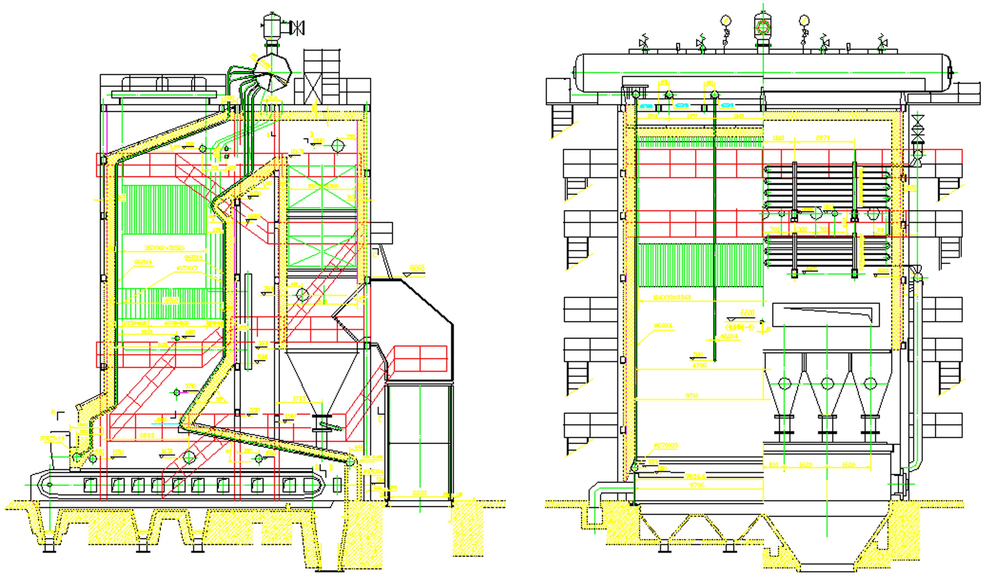 6. The steel frame is designed to resist magnitude 8 earthquake intensity. There are platforms near the door holes, which are arranged symmetrically to facilitate boiler operation and maintenance.
